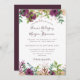 Burgundy purple floral border script wedding invitation