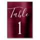 Burgundy Purple - Cranberry Marsala Faux Metallic Foil Metal Script Modern and Elegant Table Number . The table number can be updated and changed on this burgundy Autumn or Fall Wedding card. This Table Number card is part of a matching wedding collection and additional matching items can be requested by contacting the designer.