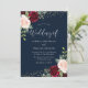 Burgundy Red & Blush Flowers Glitter Navy Wedding Invitation