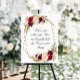 A floral design with a modern geometric frame and burgundy red and blush watercolor flowers. Pick a seat sign.