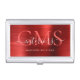 Modern Elegant Burgundy Red Brushed Metal Monogram Script Business Card Case
