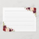 Burgundy Red Floral Bridal Shower Recipe Card.