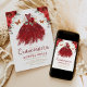 Burgundy Red Flower Quinceañera Princess Dress Invitation