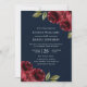 Burgundy Red Flowers, Navy Blue Wedding Invitation