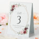 Burgundy Red Flowers, Pink Flowers, Table Numbers Table Tent