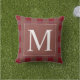 Burgundy Red Gingham Patterns White Monograms Gift Outdoor Pillow