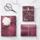 Burgundy Red Glitzy Glitter Stripes Wrapping Paper Sheets