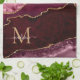 Burgundy Red Gold Glitter Geode Marble Monogram Kitchen Towel