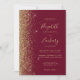 The left-hand edge of this elegant modern wedding invitation features a gold faux glitter border. The customizable text combines gold-colored handwriting, copperplate and italic fonts on a burgundy red background. The reverse side provides space for wedding details on a solid burgundy red background, along with a QR code guests can scan to visit your website and RSVP, which saves the cost of printing and mailing separate RSVP cards.