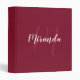 Burgundy Red Modern Script Monogram and Name 3 Ring Binder