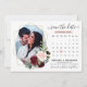 Beautiful floral boho calendar photo geometric save the date card features hand-painted watercolor floral graphics / roses in rich tones of navy blue, burgundy, marsala and blush pink / peach and charming hand lettering style font and elegant gold geometric frame. Please contact me for any help in customization or if you need any other product with this design.