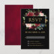 Burgundy Red Navy Floral Boho Wedding RSVP Card