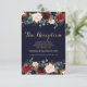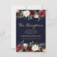 Burgundy Red Navy Floral Rustic Boho Reception Invitation