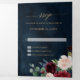 Elegant and modern romantic watercolor floral wedding trifold invitation card with details and rsvp cards, features a bouquet of burgundy / marsala , blush pink, navy blue, peach, watercolor roses with matching foliage. Perfect for a fall / midsummer wedding. Please find more matching designs and variations from my "blissweddingpaperie" store. And feel free to contact me for further customization or matching items