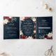 Elegant and modern romantic watercolor floral wedding trifold invitation card with details and rsvp cards, features a bouquet of burgundy / marsala , blush pink, navy blue, peach, watercolor roses with matching foliage. Perfect for a fall / midsummer wedding. Please find more matching designs and variations from my "blissweddingpaperie" store. And feel free to contact me for further customization or matching items