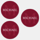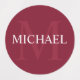 features personalized name in white and monogram in light burgundy red as background, in classic serif font style, on burgundy red background.