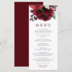 Burgundy Red Rose Flowers Wedding Menu