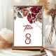 Burgundy Red Roses Floral Wedding Table Number