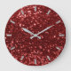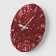 Burgundy Red Ruby Sparkly Bean Glitter Gray Glam Large Clock