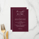 Add a touch of classic elegance to your rehearsal dinner with this deep burgundy menu card. Designed for “The Night Before” your wedding, this minimalist red wine layout features rich coloring and clean typography for a modern yet timeless look. The deep burgundy and plum tone makes it especially perfect for fall or winter celebrations. Personalize with your dinner courses and event details for a polished and coordinated table setting.