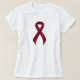 Burgundy ribbon with "support awareness" written on it. The burgundy ribbon is associated with Cesarean Section Awareness Month in April; Antiphospholipid Antibody Syndrome Month, and Headaches Awareness Month in June; Meningitis Awareness Month and Meningococcal Meningitis Awareness Month in August; Adhesions Awareness Month, Brain Aneurysm Awareness Month, and Sickle Cell Anemia Awareness Month in September; PostinPolio Syndrome Awareness Month in October; and Hospice Care Awareness Month in November. And the Awareness of AV Malformation, Cystic Hygroma Awareness, Disabled Adults Awareness, Factor V Leiden Awareness, Hemangioma and Vascular Malformation, Hereditary Hemochromatosis, Hughes Syndrome, Lymphatic Malformation, Multiple Myeloma, PHACES, Sturge-Weber Syndrome, Thrombophilia, and William's Syndrome.