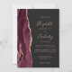 Burgundy Rose Gold Agate Dark QR Code Wedding Invitation