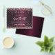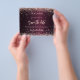 A modern and elegant Save the Date for a 50th birthday party. A deep burgundy gradient background. Decorated with rose gold confetti. Personalize and add date, place, name and age. Rose gold colored text.