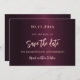 A modern and elegant Save the Date for a 50th birthday party. A deep burgundy gradient background. Personalize and add date, place, name and age. Rose gold colored text.
