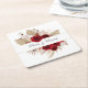 Burgundy Roses & Pampas Grass Wedding Square Paper Coaster