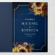 Burgundy Roses Sunflower Navy Blue QR Code Wedding Tri-Fold Invitation