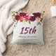 Burgundy Ruby Red Floral 15th Wedding Anniversary Throw Pillow
