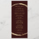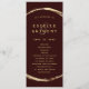 This wedding program features a faux gold circle frame with an elegant ampersand and simple calligraphy with a burgundy marsala background.