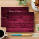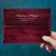 Personalized burgundy rustic wood and sunflowers wedding envelopes with a return address. Our burgundy envelopes feature sunflower flowers and string lights on a barn wood background. Matching items available.