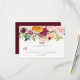 Rustic blooms including peonies and roses in burgundy, saffron yellow, mauve and pale pink RSVPs. The back of the card is burgundy.