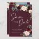Boho Burgundy and Blush floral Save the date Invitation. This invitation is characterized by boho burgundy and blush roses and flowers with two modern high-class fonts that shape the trends of the present and future festive events.