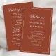 Enhance your special day with these elegant wedding ceremony programs, featuring a rust burgundy color theme and classic calligraphy script. This double-sided single sheet layout offers a simplistic, sophisticated style, beautifully displaying your order of service and bridal party list. The stylish, trendy typography complements the formal, traditional aesthetic, while the classy elegance design adds a refined touch. Perfect for an effortlessly chic and timeless wedding