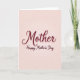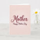 This greeting card features the large word “Mother” centered in deep burgundy lettering, with smooth, flowing strokes that feel like a gentle embrace ❤️. Just below it, “Happy Mother’s Day” appears smaller in the same style, aligned under the main word to create a calm, affectionate rhythm. The background is a soft, muted pink that sets a cozy, caring mood, like a quiet moment shared over tea. A subtle glow behind the lettering adds warmth, as if the words are softly lit from within. The contrast between the dark burgundy text and the pale pink field keeps everything easy to read while still feeling tender and romantic. Light, airy dots drift across the backdrop like delicate confetti, adding a sweet touch 🌼. The dots are faint and semi-transparent, scattered evenly across the pink background.