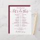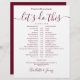 This stylish burgundy and white wedding schedule timeline can be personalized with your wedding details in chic burgundy lettering. Designed by Thisisnotme©