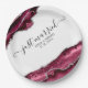 Burgundy & Silver Agate Borders Just Married Paper Plates