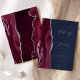 Burgundy Silver Agate Navy Blue Modern Wedding Foil Invitation