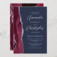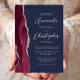 Burgundy Silver Agate Script Navy Blue Wedding Invitation