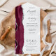 The left-hand edge of this elegant modern all-in-one wedding invitation and RSVP features a burgundy watercolor agate border trimmed with faux silver glitter. The customizable text combines charcoal gray handwriting, copperplate and italic fonts on a white background. The return address appears on the outside flap and the reverse side of the detachable RSVP card in charcoal gray text on solid white.