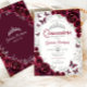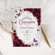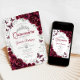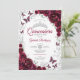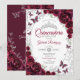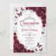 Burgundy silver and white Quinceanera celebration invitation. Features, script font, silver butterflies, watercolor roses and tiara. Perfect for an elegant princess style glam celebration. Personalize with your own details. Printed Zazzle invitations or instant download digital printable template.