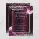 A deep burgundy background decorated with burgundy and pink florals, flowers and faux silver glitter, sparkles. Personalize and add your names and wedding details. Black letters.