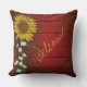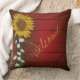 Sunflowers are all the style, so why not get your pillows to be in style too. Delightful patterns either in single flowers, tiled flowers or patterns on a barnboard background. Burgundy barnboard background with one single sunflower surrounded by daisies. Customize the text to suit.