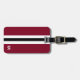 This modern burgundy luggage tag features a black stripe down the center with two white stripes on either side and your monogram along the bottom. The reverse side of the tag is burgundy with white lettering for your name, address and phone number. Copyright Kathy Henis
