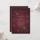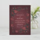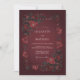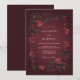 This design features a rich palette of deep wine and oxblood tones. Dark crimson roses and charcoal foliage create a moody and romantic aesthetic. The atmospheric style is perfect for an elegant evening event during the colder months. Lush botanical elements provide a sense of luxury and depth against the dark background.