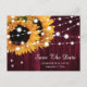 These rustic sunflower wedding save the date postcards are ideal for your burgundy rustic wedding party inspired by sunflower flowers. Matching items available.