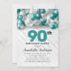 Burgundy Teal Silver Balloon Glitter 90th Birthday Invitation