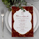Elegant rustic thankful Thanksgiving holiday dinner menu featuring burgundy & warm orange golden tones outline of fall leaves & pumpkins pattern.